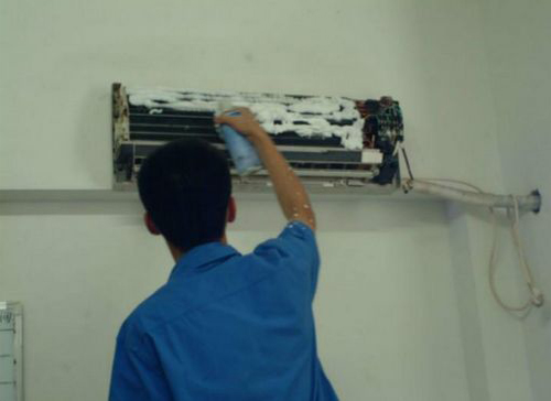 | 大同空调维修师傅给大同用户上门维修清洗空调。 |
